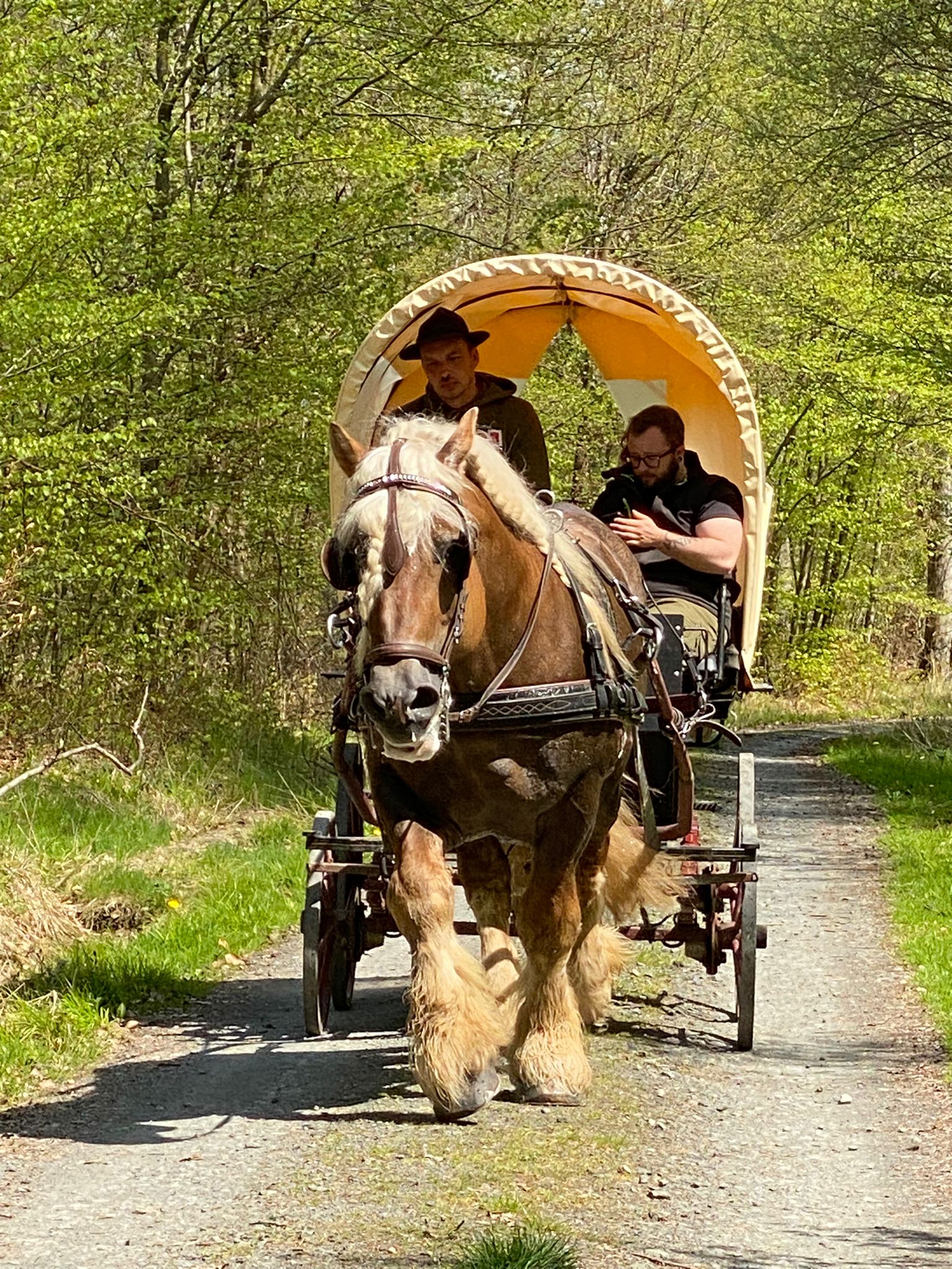 Wir fahren gern Kutsche, treffen Gleichgesinnte, besuchen andere Höfe und erkunden die Umgebung. In unserer Freizeit zieht’s uns raus – sei es zum Kaffee in die Nachbarstadt, zum Wandern in den Taunus oder mal auf einen Abstecher nach Frankfurt.